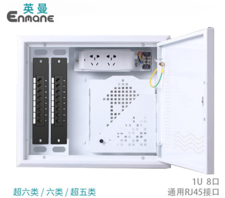 家用弱電箱專用款網絡配線架經過家用弱電箱測試和使用者們的溝通,一步步構造出這款1U8口辦公、家用兩不誤配線架。家用弱電箱這款的孔徑尺寸事21.5CM,符合家用市面尺寸,由英曼專門定制的。