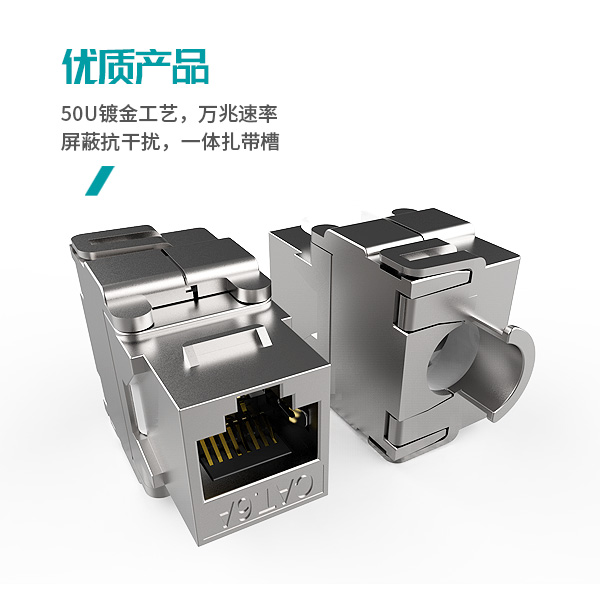 50U鍍金工藝,免工具打線;萬兆速率,屏蔽抗干擾;一體扎帶槽。